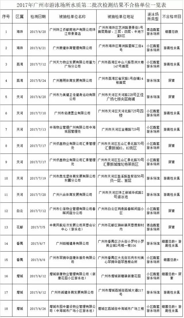 廣州市衛計委最近抽檢了599家泳池,公布了這些泳池的水質抽檢結果,其中有31家泳池不合格,其中不乏星級酒店泳池,很多小區里面的泳池也不合格。