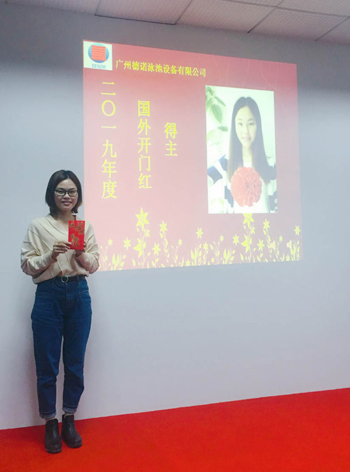 都說努力了不一定有收獲,但是我們可以確信的是,不努力就一定不會有收獲,2019年國內獲得開門紅第一個訂單的得主就是我們的泳池事業部的肖凡凡,國外獲得開門紅第一單的就是我們外貿部的Nancy鄧