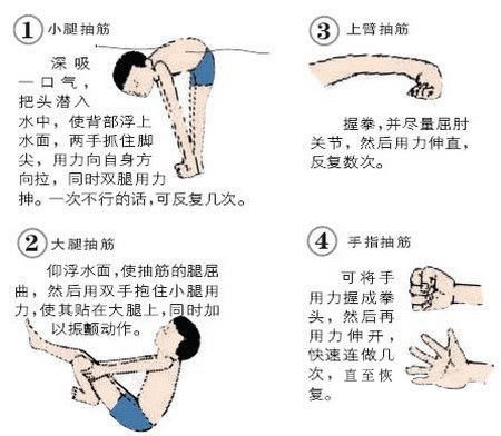 抽筋之后,首先應該想鎮定,不要慌,及時浮出水面,大喊救命。在救援人員來之后,不要慌到抱緊人家不放,要配合他,不然倆人都會出問題。上岸后邊按摩,做伸直曲腿動作,一般十幾次就能緩解抽筋疼痛。或者用抽筋肢體對側的手握住抽筋肢體的腳趾,用力向身體方向拉,同時用同側的手掌壓在抽筋肢體的膝蓋上,幫助抽筋腿伸直,一般會緩解癥狀。